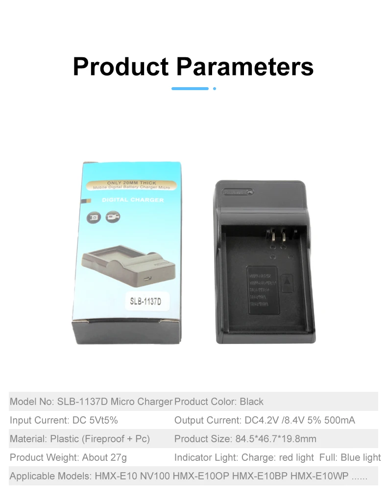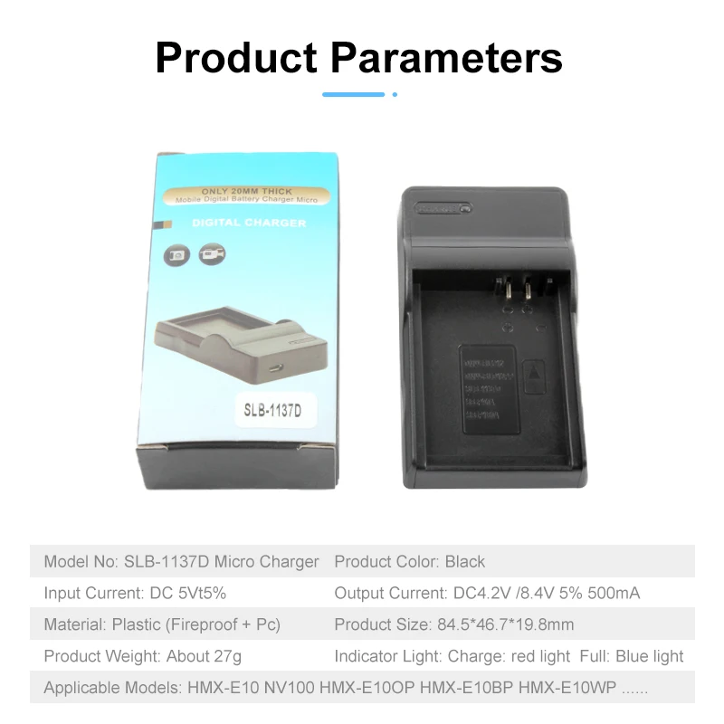 Smart circuit design and LED indicators with automatic current control to protect battery from overcharging, short circuit, and electrical shock. This USB charger powers up SLB-1037 battery battery pack and is fully compatible with the following Samsung